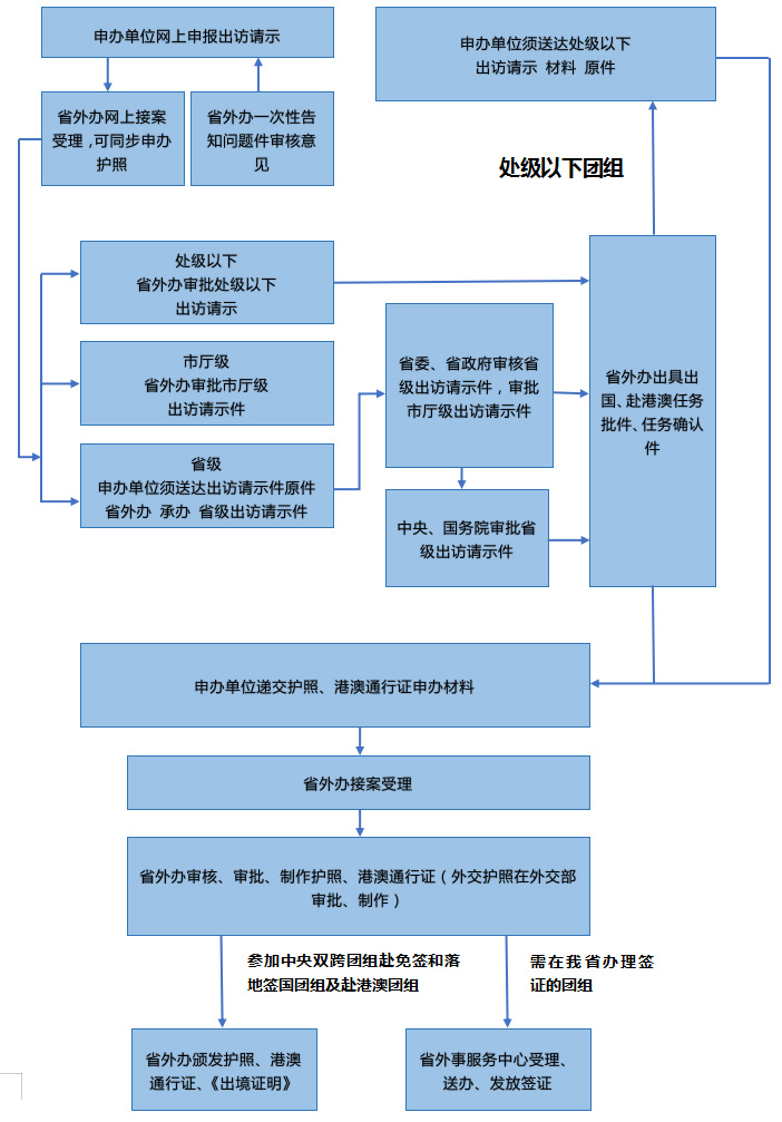 河北省人民政府外事办公室办理市厅级及以上因公出访申请、护照、港澳通行证基本流程